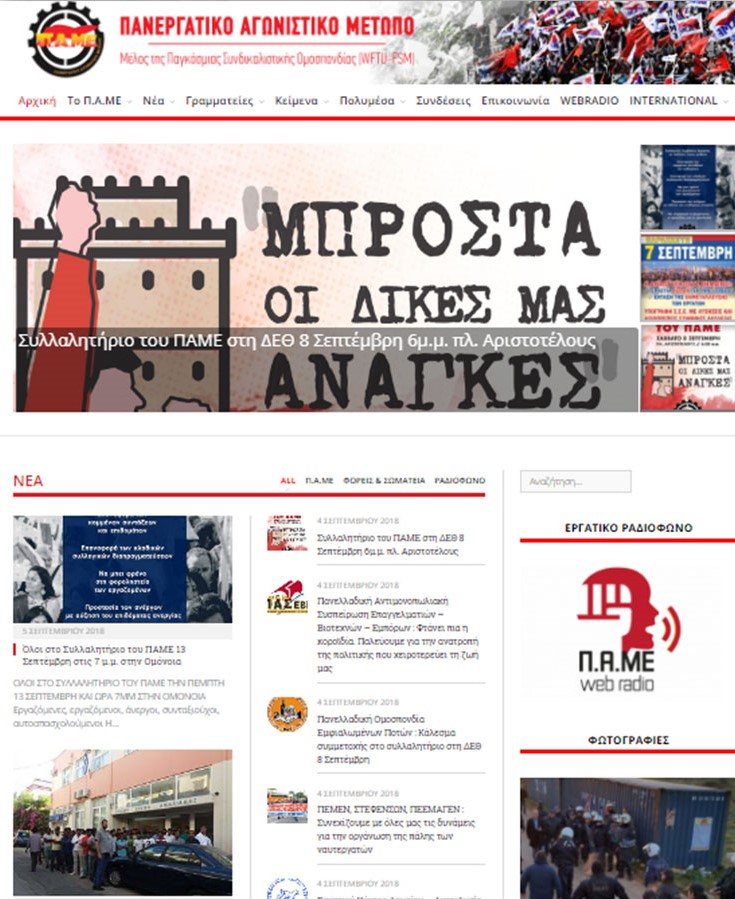 Κάλεσμα στην εργατική τάξη και στα συνδικάτα να δώσουν μαζικά το «παρών» στο συλλαλητήριο του ΠΑΜΕ στη ΔΕΘ το Σάββατο στις 6 μ.μ. στην πλατεία Αριστοτέλους απηύθυνε στη διάρκεια σημερινής συνέντευξης Τύπου η ΕΓ του ΠΑΜΕ.